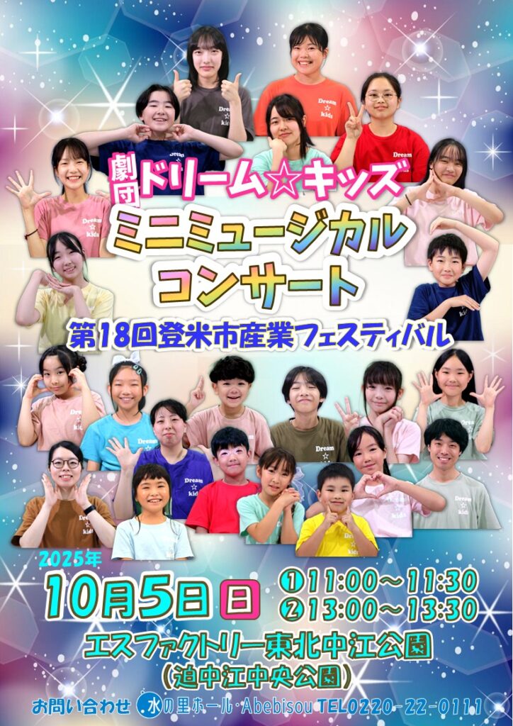 「第18回登米市産業フェスティバル」にてミュージカル劇団ドリーム☆キッズが、元気いっぱいのステージをお届けします!